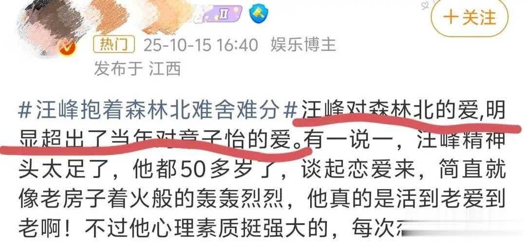 最近,汪峰和森林北在机场的一场“拥抱告别”,又给网友们喂了一大口狗粮。现场画面被路人镜头捕获,两人在检票口旁若无人地紧紧相拥,亲昵自然的动作被网友形容为“难舍难分,甚是恩爱”,恩爱值直接拉满。